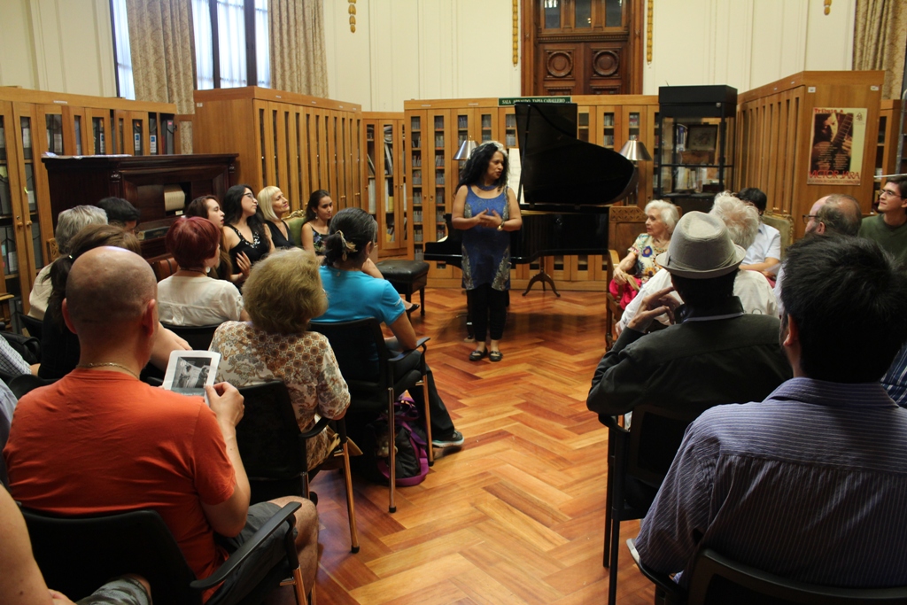 Brenda Ibañez, mexicana, fue parte del público que asistió al concierto y conversatorio de Esta señorita Trini. "Considero que el patrimonio cultural chileno es muy valioso, pero poco tratado y conocido. Agradezco que la Biblioteca Nacional gestione este tipo de actividades. Es un ejemplo para los otros países de Latinoamérica", mención al finalizar el evento.