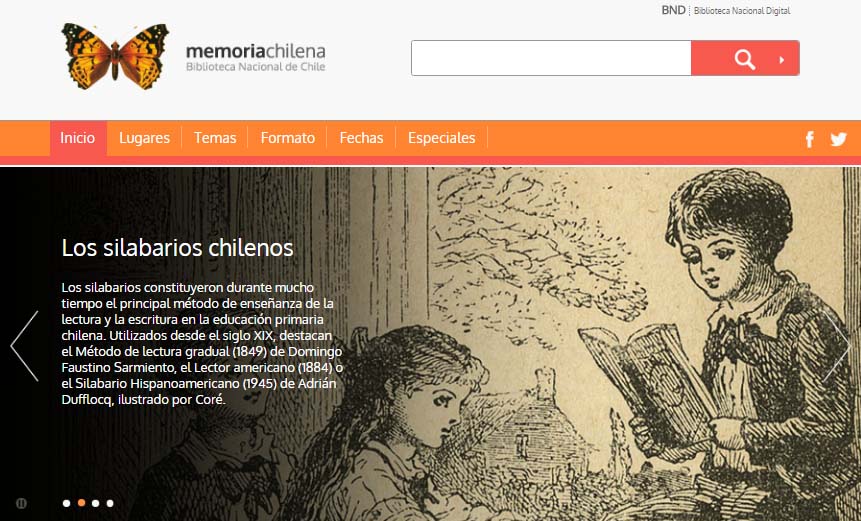 Los silabarios constituyeron durante mucho tiempo el principal método de enseñanza de la lectura y la escritura en la educación primaria chilena. El minisitio Los silabarios chilenos reúne una selección de estos documentos, utilizados desde el siglo XIX, entre los que destacan: El Método de lectura gradual, fue publicado en 1849 por Domingo Faustino Sarmiento y sentó las bases pedagógicas del silabario moderno en Chile a través de la incorporación de un método de aprendizaje basado en el sonido de las sílabas y no en el nombre de las letras, como había sido hasta ese entonces. El silabario Nuevo método para la enseñanza simultánea de la lectura i escritura (1884), conocido como "Silabario Matte" o también como "El ojo", creado por Claudio Matte Pérez, fue el texto oficial de enseñanza en las escuelas chilenas hacia finales del siglo XIX. Por su parte, El lector americano : nuevo curso gradual de lecturas fue un silabario publicado por el abogado José Abelardo Núñez quien jugó un importante rol en la actualización de los modelos educativos en Chile durante la segunda mitad del siglo XX. Por último, el Silabario hispanoamericano, basado en el "Silabario Matte", fue publicado en 1945 por el profesor Adrián Dufflocq Galdames. Este silabario tuvo tanta aceptación que en 1964 fue aprobado por el Ministerio de Educación para ser utilizado en todas las escuelas públicas y particulares del país. Cuenta además con valiosas ilustraciones de Coré.