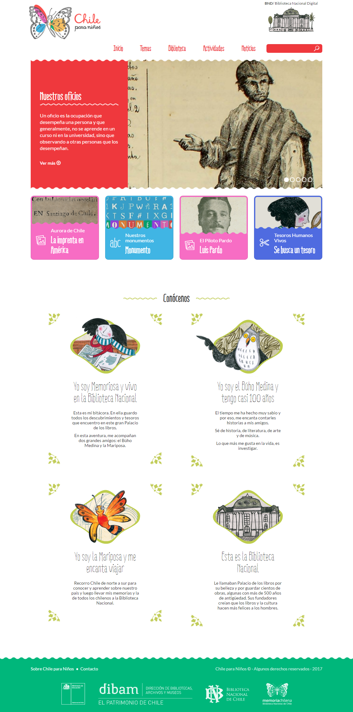 El lanzamiento del nuevo sitio de Chile para Niños se realizará el domingo 28 de mayo, Día del Patrimonio, a las 12:00, en la Sala América de la Biblioteca Nacional.