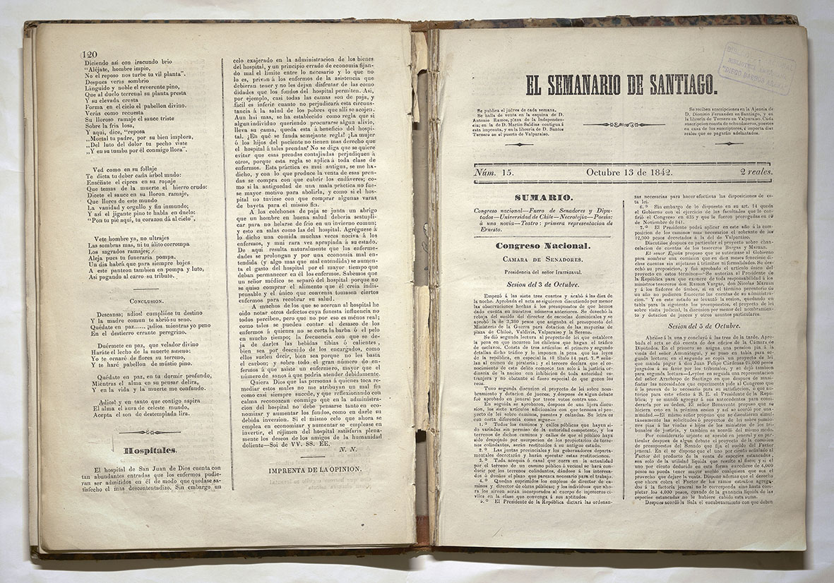 Memoria Chilena continúa su exploración del siglo XIX con dos minisitios: El Semanario de Santiago (1842-1843) y La Quinta Normal (1875-2005). Estas nuevas investigaciones completan 960 minisitios disponibles en la plataforma web de la Biblioteca Nacional.