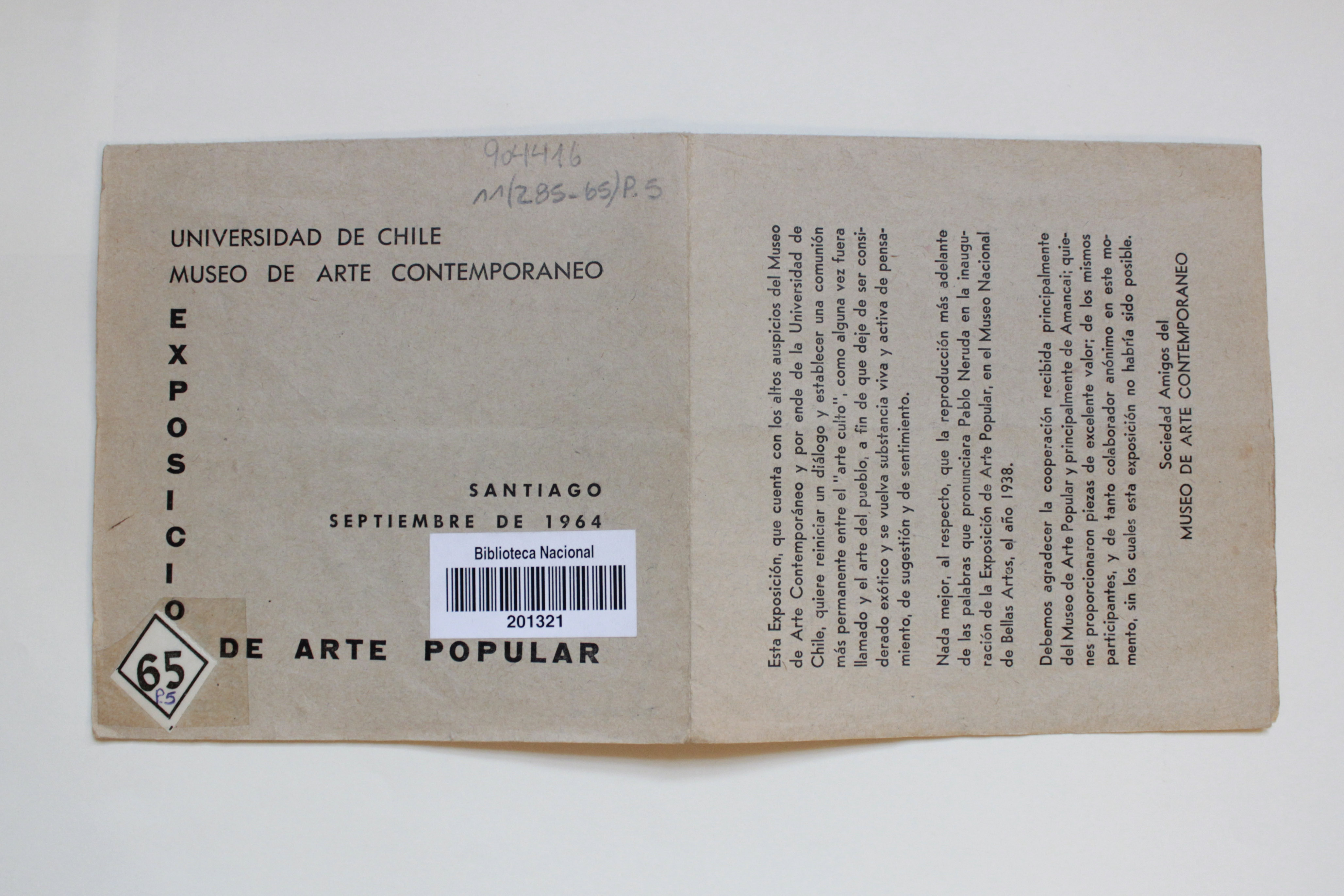 El minisitio también se refiere a algunas instituciones culturales que, a partir de fines del siglo XIX, se instalaron en distintos edificios del parque: el Museo de Historia Natural, que a partir de 1876 se instaló en el Palacio de la Exposición Internacional; el Museo Nacional de Bellas Artes, que desde 1885 funcionó en el edificio Partenón, que luego fue sede del Museo de Arte Contemporáneo entre 1947 y 1974; y, a partir de 1985, alberga al Museo de Ciencia y Tecnología. También se presenta el Palacio Versailles, que fue inicialmente sede de la Sociedad Nacional de Agricultura, luego Facultad de Agronomía de la Universidad de Chile hasta 1970, posteriormente consultorio externo del Hospital San Juan de Dios y, a partir de 2005, es sede en Quinta Normal del Museo de Arte Contemporáneo. Varios documentos digitales dan cuenta de la actividad cultural dentro de estas construcciones: del Museo de Historia Natural, se presentan Guía del Museo Nacional (1868), Zoolojia chilena: catálogo de las aves chilenas existentes en el Museo Nacional de Santiago (1868), Descripción de los ídolos peruanos del Museo Nacional de Santiago(1879) y Los zoofitos chilenos del Museo Nacional (1892); del Museo Nacional de Bellas Artes y su funcionamiento en El Partenón, se incluye el catálogo Museo Nacional de Bellas Artes de Santiago de Chile (1896); y del Museo de Arte Contemporáneo, se pueden ver Exposición de arte popular (1964), interesante pieza desplegable de difusión que muestra los artistas que exhibían en ese momento en el edificio El Partenón, Sabe usted lo que es el Museo? (1966) y El poder a la gente: curatoría educativa (2014), folleto que presenta la actividad actual del museo en el Palacio Versailles.