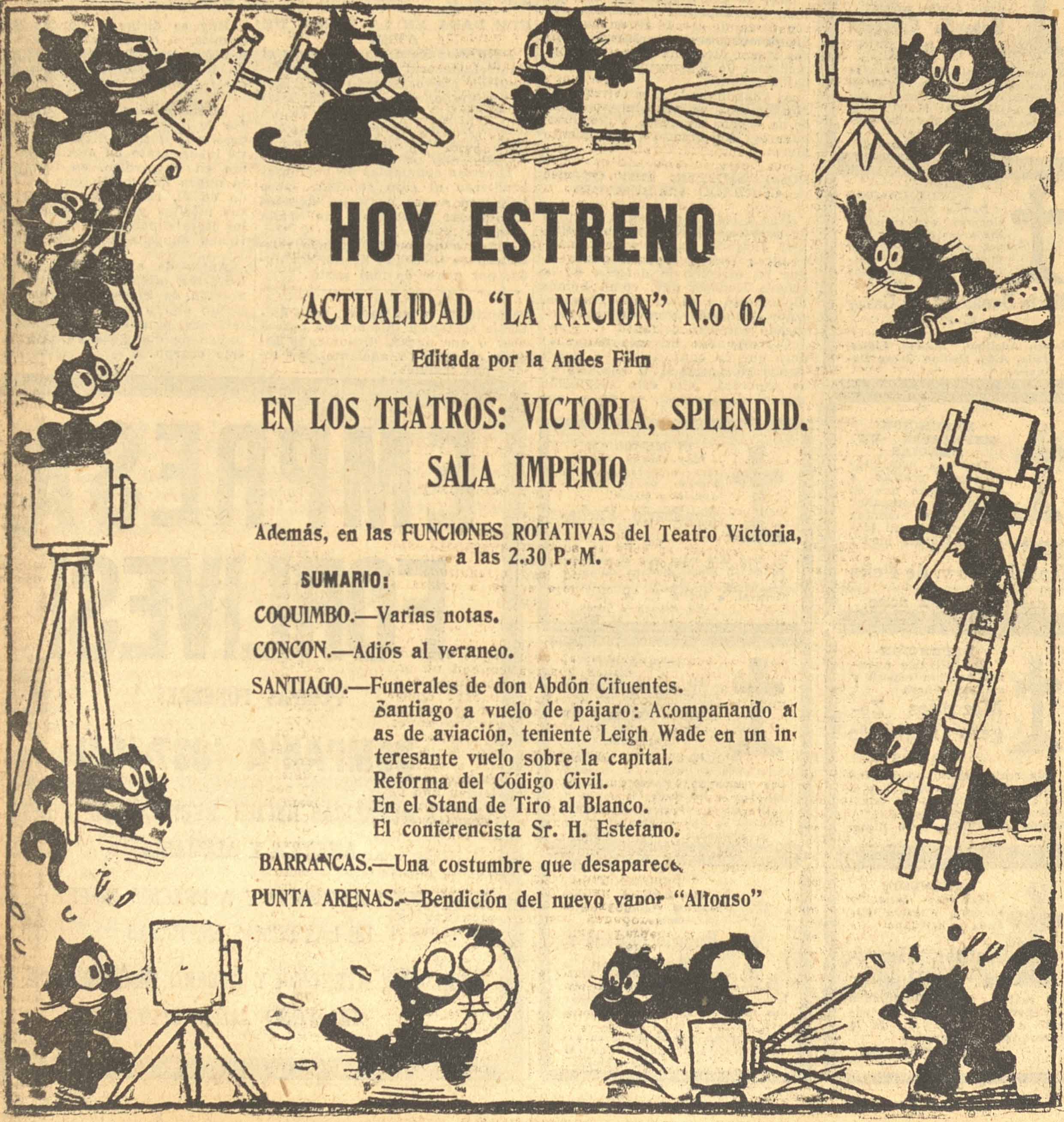 Un protagonista de la época de los noticiarios fue Andes Films, productora de cine que produjo no solamente Actualidades La Nación, sino también propagandas de empresas particulares y películas de argumento como El húsar de la muerte.