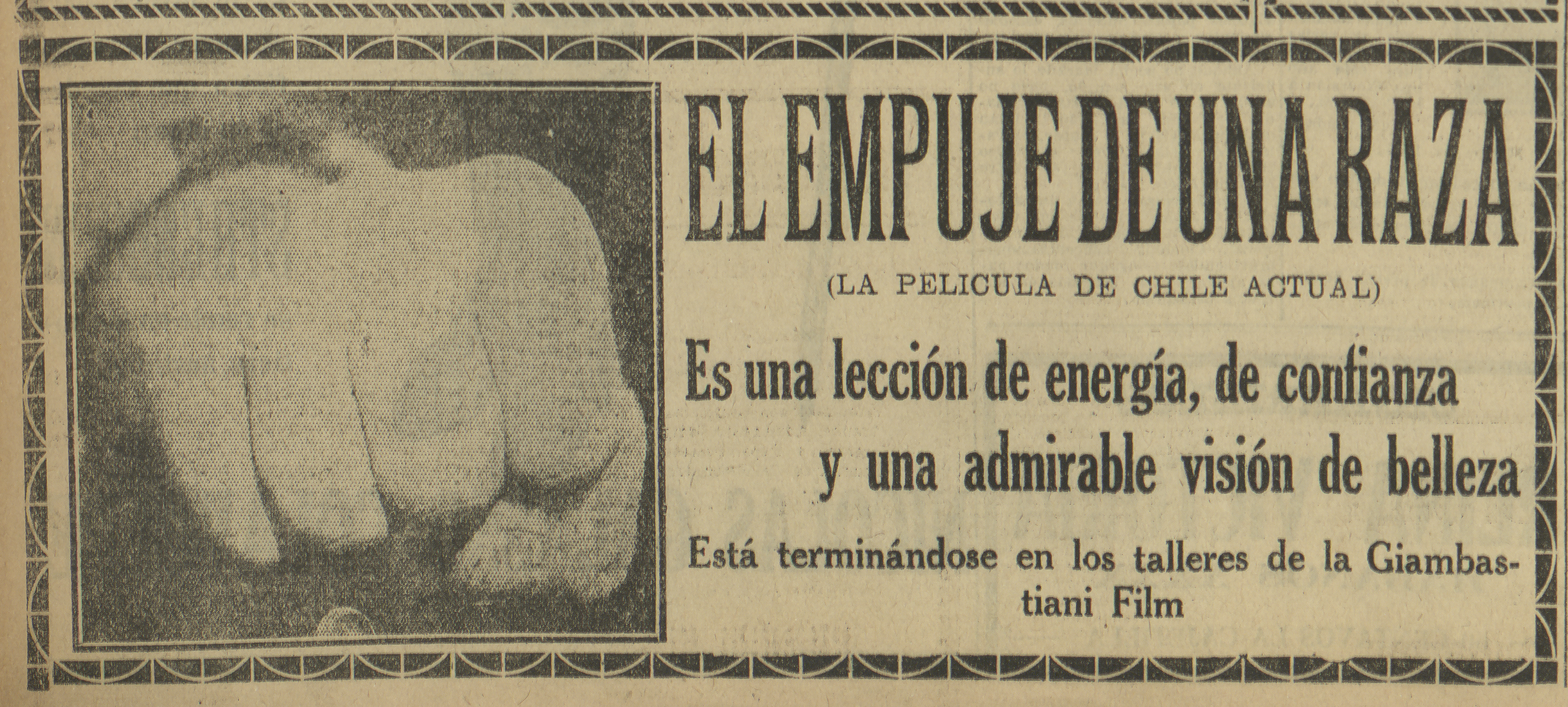 Los noticieros fueron pequeños filmes de contenido noticioso e informativo que se transmitieron regularmente en los cines, antes de la exhibición de las películas. El minisitio Noticieros cinematográficos chilenos (1919-1931) presenta estas manifestaciones a partir de los avisos que publicó la prensa escrita de la época.