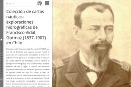 Colección de cartas náuticas: exploraciones hidrográficas de Francisco Vidal Gormaz en Chile (1860-1872) reúne material cartográfico elaborado por el primer director de la Oficina Hidrográfica de la Armada (actual Servicio Hidrográfico y Oceanográfico de la Armada, SHOA) para facilitar al construcción de canales, caminos y establecimientos militares, además de crear puertos durante el siglo XIX.