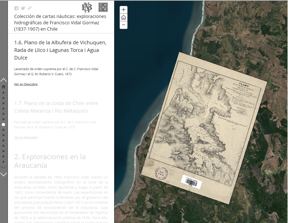 23 cartas náuticas de la costa del norte y centro del país, además de ríos y lagos de la Araucanía, Llanquihue y Chiloé, fueron georreferenciadas para crear una cartografía interactiva basada en el material que conserva la Sección Mapoteca y Sala Medina de la Biblioteca Nacional de Chile.