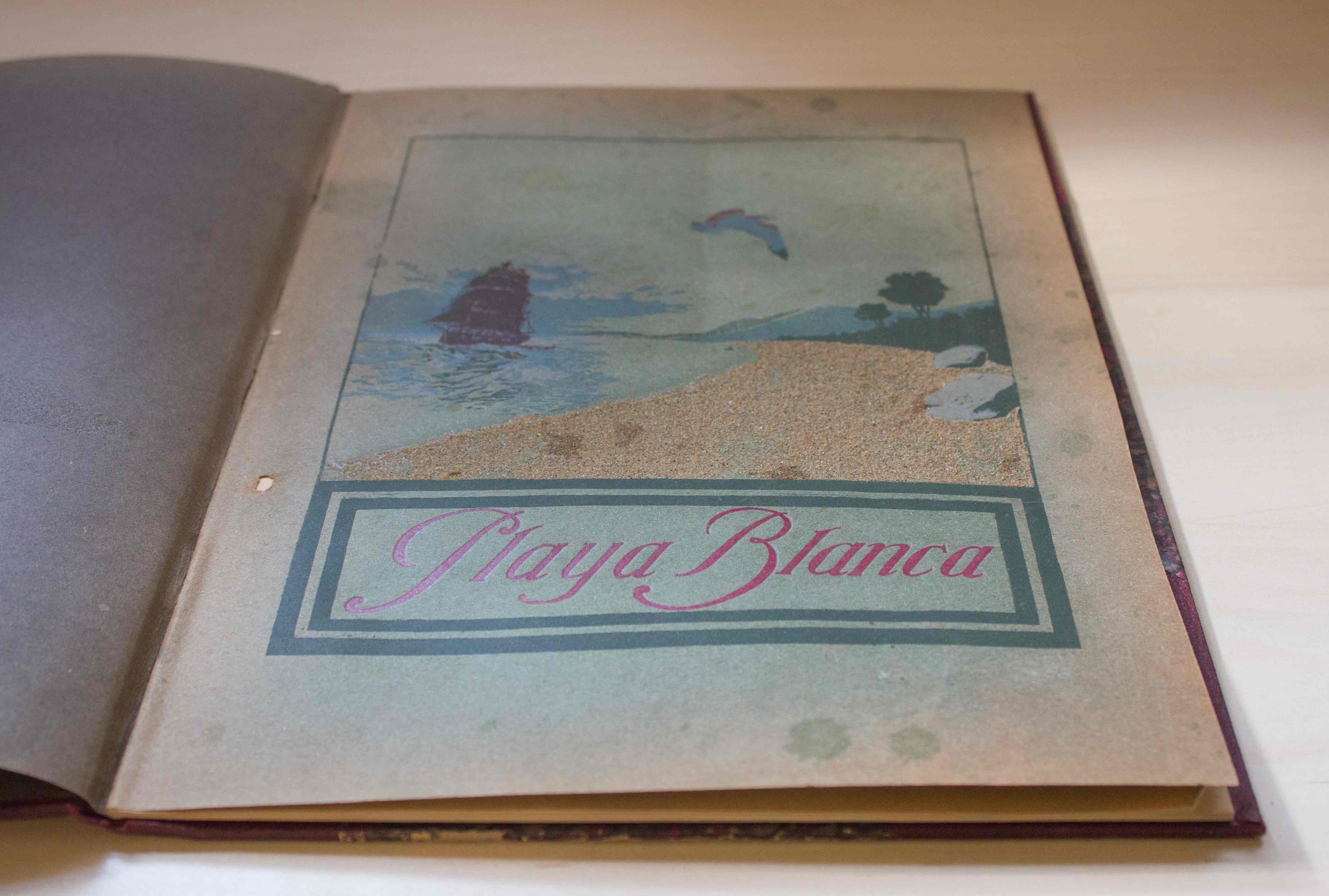 El libro Playa blanca (Las Cruces de Cartagena): un balneario moderno, de primera clase, para personas de buen gusto (1915) tenía arena real en su portada.