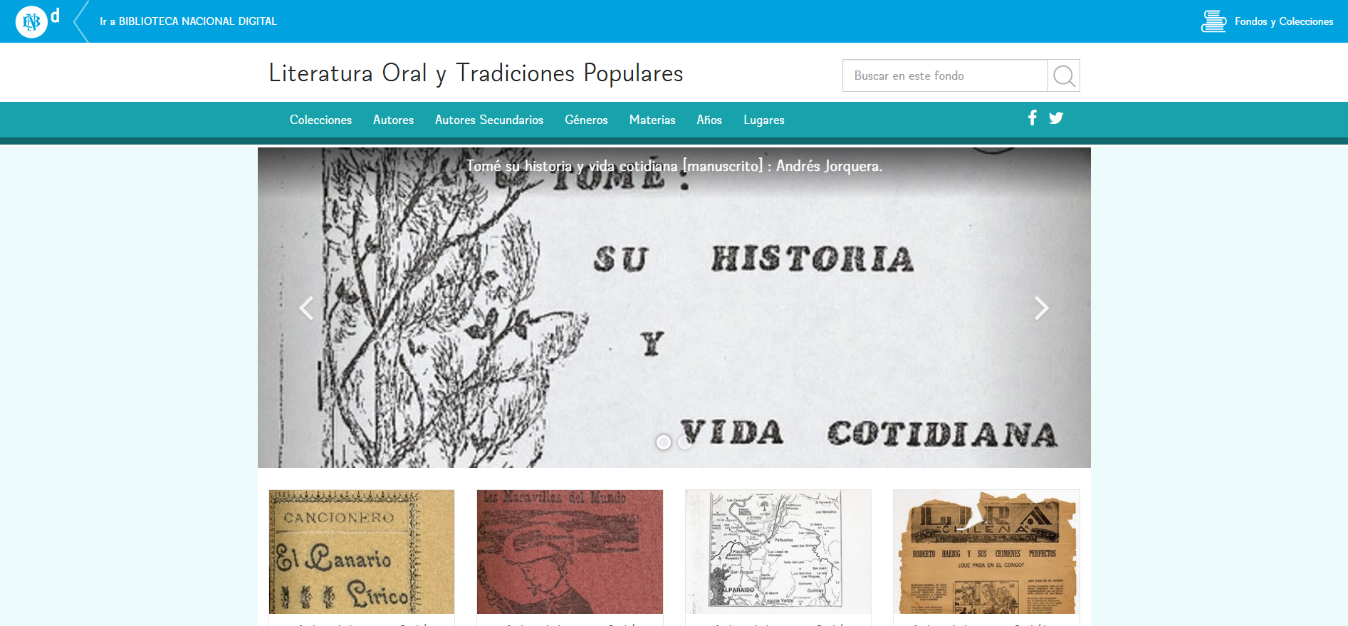 A los 12 fondos y colecciones que ya estaban en línea en la Biblioteca Nacional Digital, se suman otros dos, correspondientes a Colecciones Especiales: el Archivo de Literatura Oral y Tradiciones Populares y el Archivo de Láminas y Estampas.