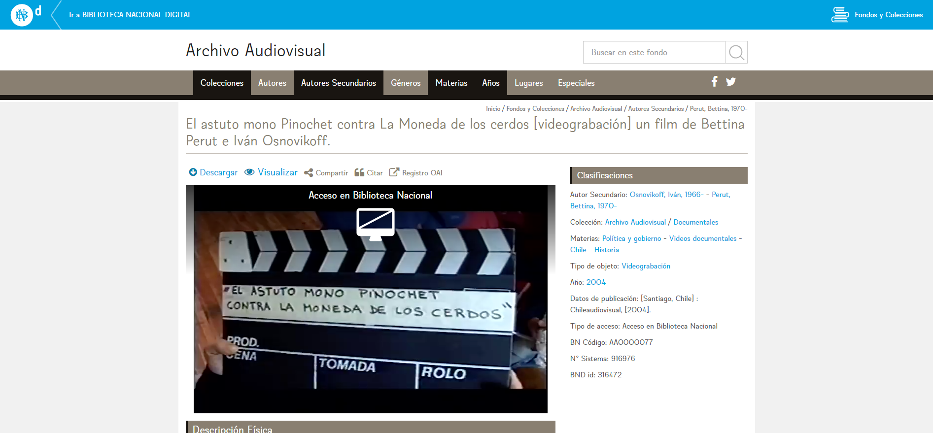 La primera modificación permite la visualización de los objetos digitales de Memoria Chilena en el sitio web de BNd, clasificados por fondo y colección. En una primera etapa, esta mejora estará implementada solamente en los documentos de Fondo General. A futuro, esta posibilidad se extenderá a las demás colecciones bibliográficas de la BNd.