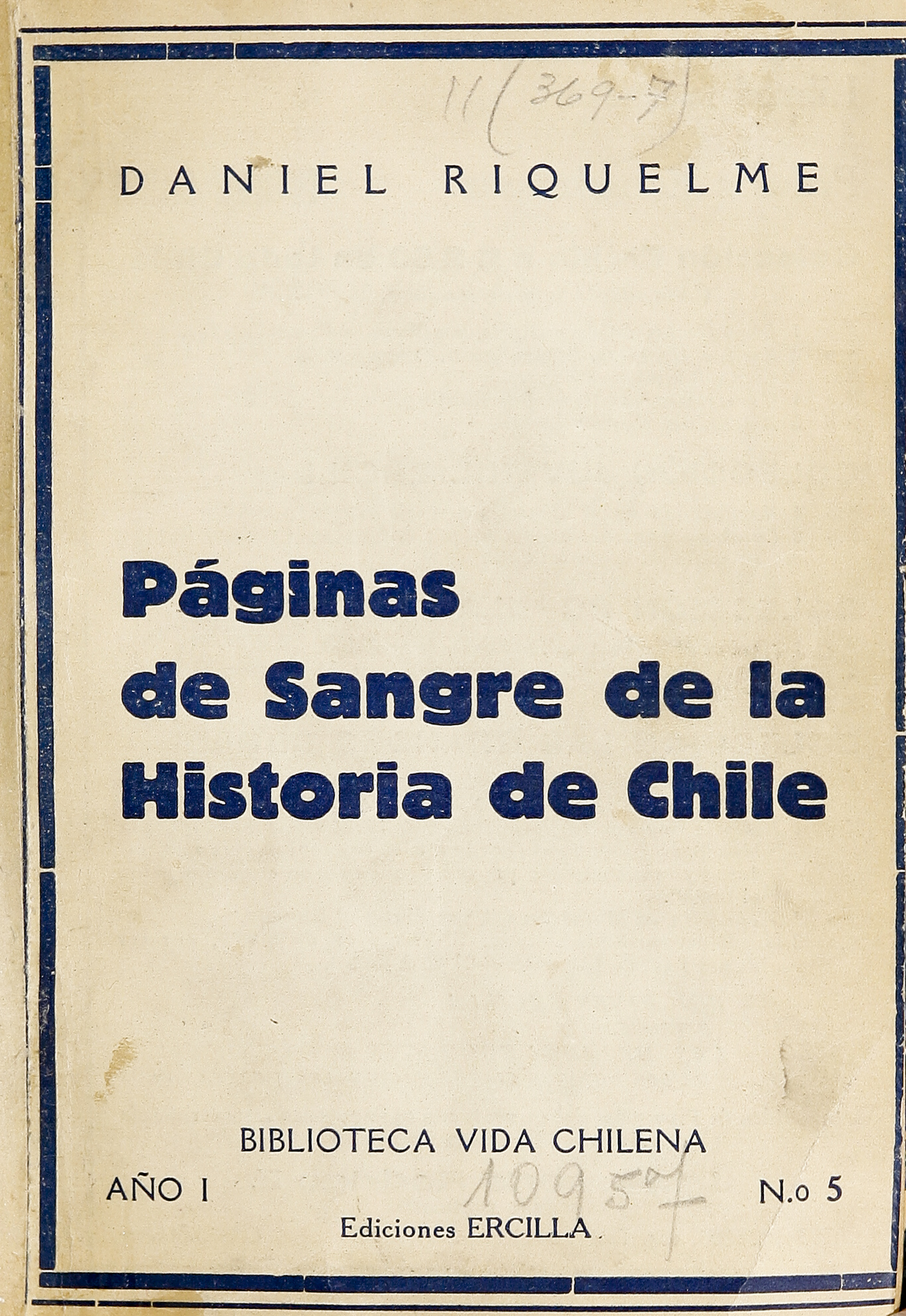 Páginas de sangre de la historia de Chile (1932), en tanto, es una recopilación de artículos históricos del autor publicados originalmente en La Libertad Electoral (1886-1901), entre fines de 1893 y principios de 1894. Editados por la Editorial Ercilla los artículos dan cuenta de dos sucesos acaecidos durante el año 1837: el fusilamiento de tres vecinos liberales de la comuna de Curicó y el asesinato de Diego Portales Palazuelos (1793-1837).