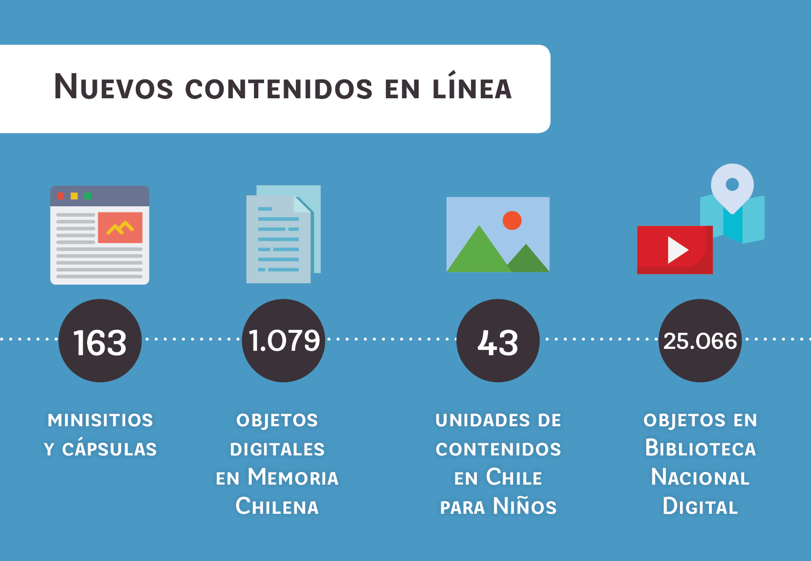 Veinte nuevos minisitios publicó Memoria Chilena durante 2019, dentro de los cuales se incluyeron 125 nuevas cápsulas y otras 18 se editaron para incluir información actualizada. En total, el sitio web finalizó el año con 994 minisitios en línea, 4915 libros y 2773 revistas para descargar, entre muchos otros.