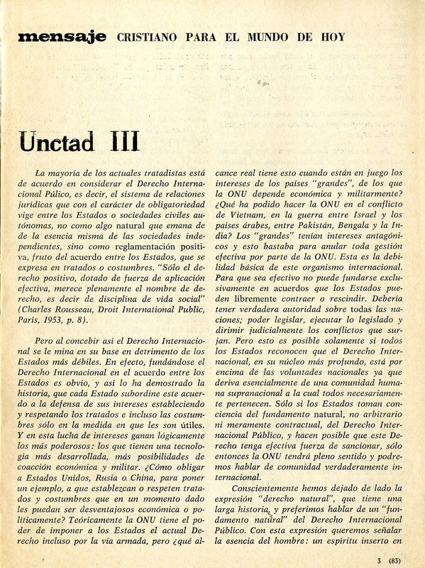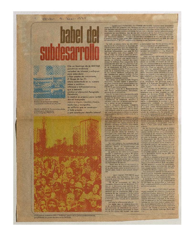 La batalla del desarrollo UNCTAD III [artículo] : Elena Vial y María Paz del Río.