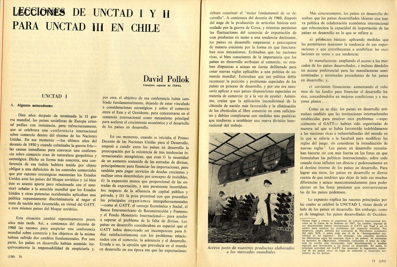 Lecciones de UNCATD I y II para UNCTAD III en Chile [artículo] David Pollok.