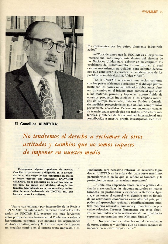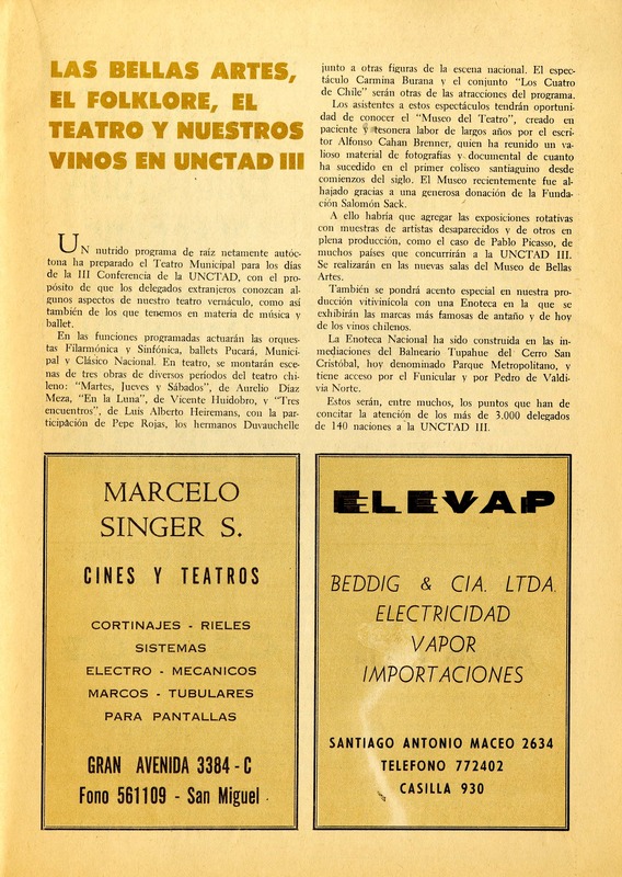 Las bellas artes, el folklore, el teatro y nuestros vinos en UNCTAD III [artículo].