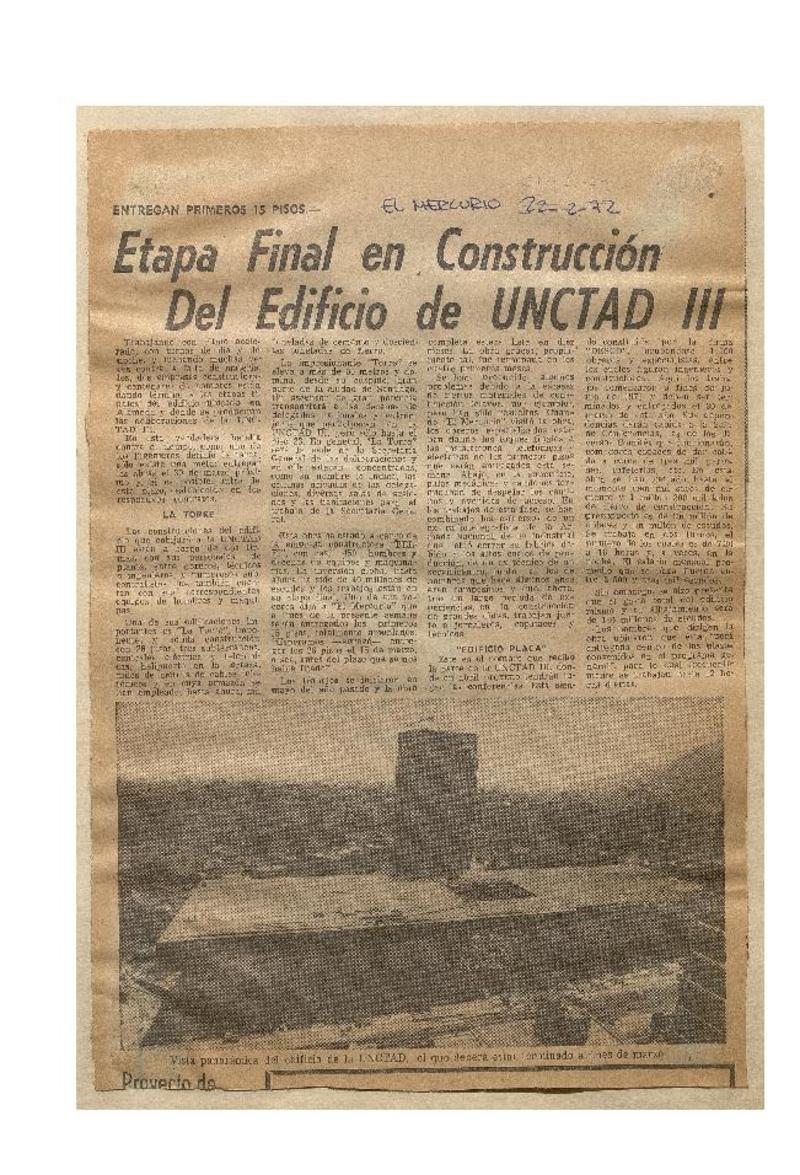 Monumental edificio construyó Chile para Tercera Conferencia de la UNCTAD [artículo].