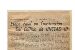 Etapa final en construcción del edifico de UNCTAD III entregan primeros 15 pisos. [artículo] :