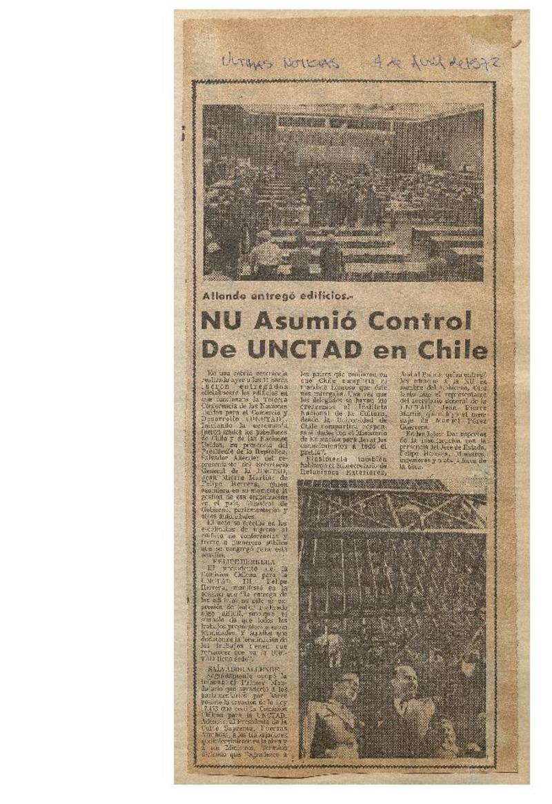 NU asumió control de UNCTAD en Chile Allende entregó edificios. [artículo] :