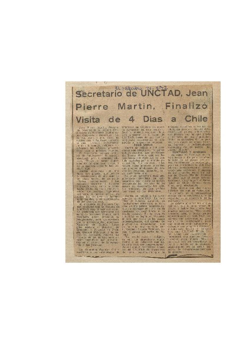 Secretario de UNCTAD, Jean Pierre Martin, finalizó visita de 4 días a Chile [artículo].