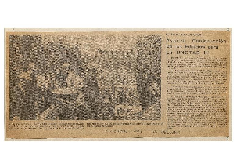 Avanza construcción de los edificios para la UNCTAD III Allende visito las obras. [artículo] :