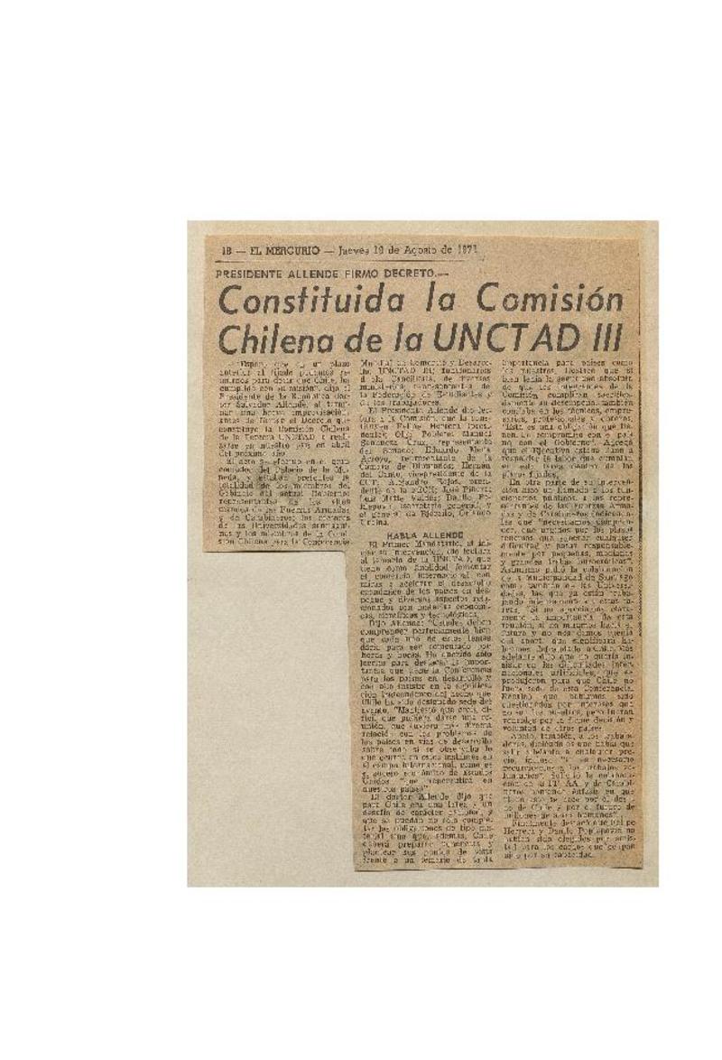 Constituida la Comisión Chilena de la UNCTAD III Presidente Allende firmó decreto. [artículo] :