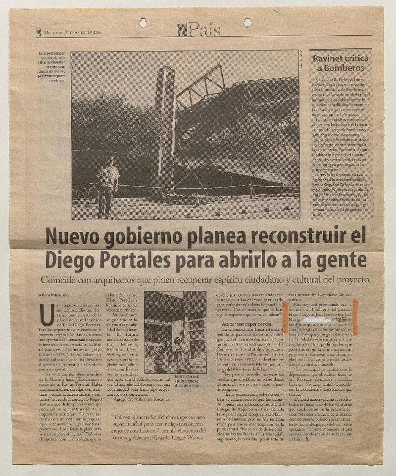 Nuevo gobierno planea reconstruir el Diego Portales para abrirlo a la gente coincide con arquitectos que piden recuperar espíritu ciudadano y cultural del proyecto [artículo] : Óscar Valenzuela.