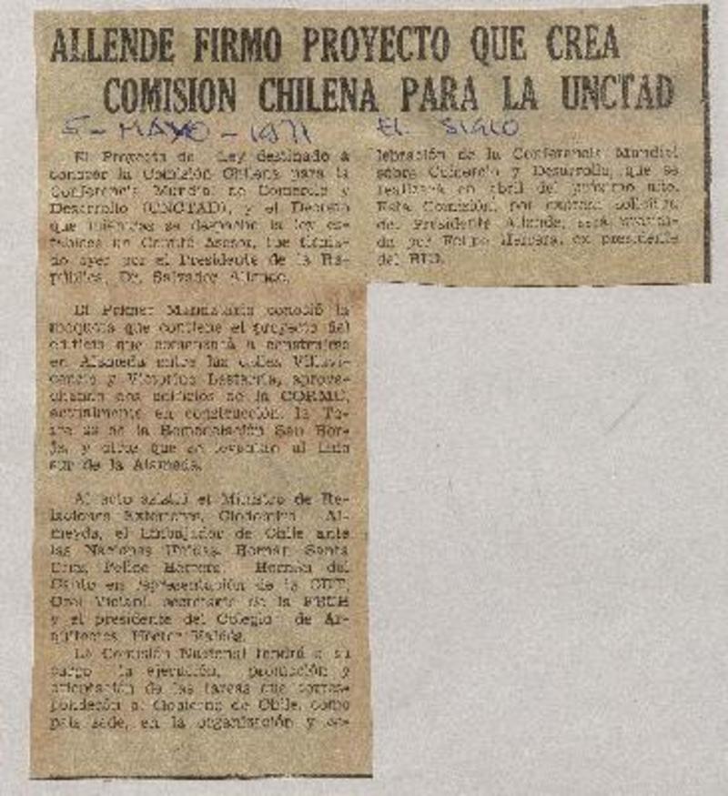 Allende firmó proyecto que crea comisión chilena para la UNCTAD [artículo].
