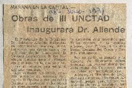 Obras de III UNCTAD inaugurará Dr. Allende mañana en la capital. [artículo] :