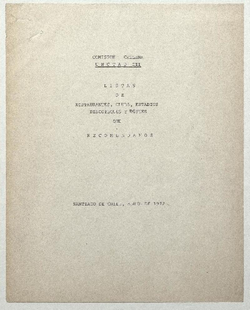 Listas de restaurantes, clubs, estadios, discoteques y boites que recomendamos Comisión Chilena UNCTAD III.
