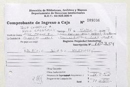 [Comprobante de ingreso a caja, registro propiedad intelectual] [manuscrito].