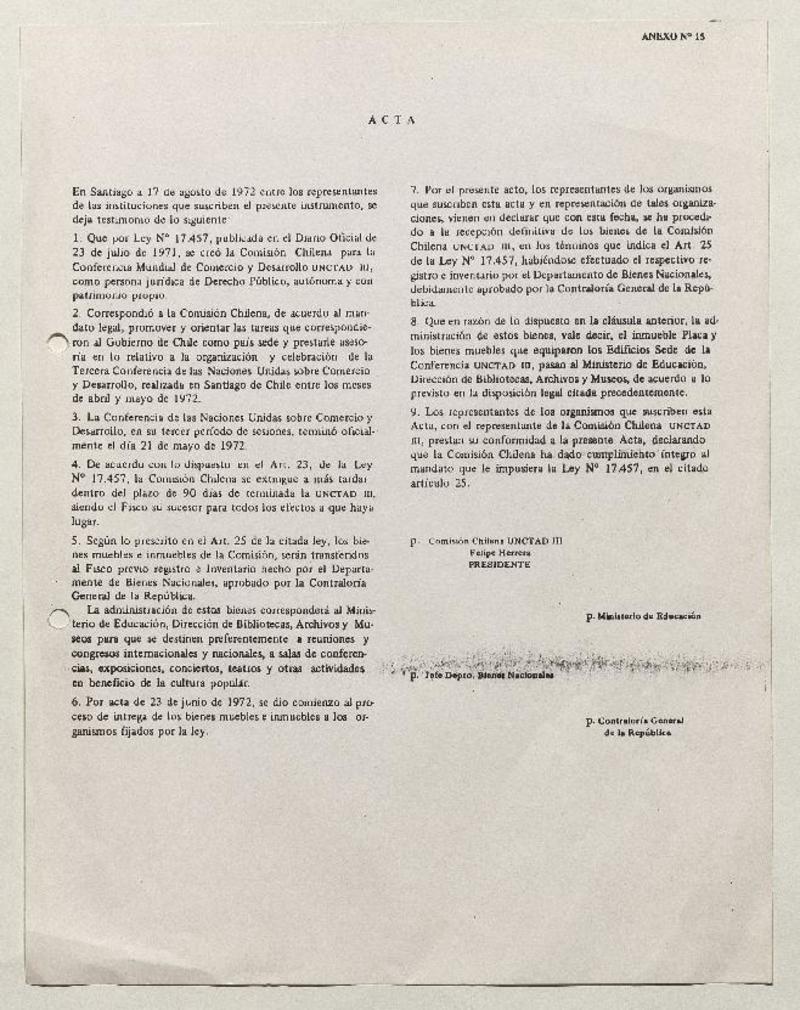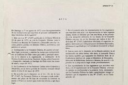 Acta [manuscrito] p. Comisión Chilena UNCTAD III Felipe Herrera Presidente, p. Ministerio de Educación, p. Jefe Depto. Bienes Nacionales, p. Contraloría General de la República.