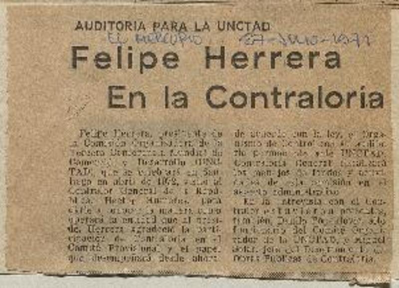 Felipe Herrera en la Contraloría auditoría para la UNCTAD. [artículo] :