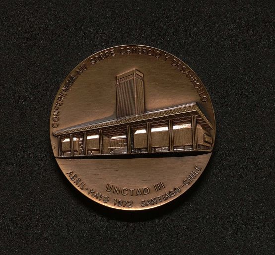En 1971 se inició en Santiago la construcción de un edificio de 22 mil metros cuadrados para albergar la III Conferencia de las Naciones Unidas sobre Comercio y Desarrollo en el Tercer Mundo (Unctad III), que se llevaría a cabo en Chile al año siguiente. Diseñado por los arquitectos José Covacevic, Hugo Gaggero, Juan Echeñique, José Medina y Sergio González la edificación fue finalizada en apenas 275 días gracias al trabajo de obreros y voluntarios, y se inauguró el 3 de abril de 1972, transformándose en un obra emblemática del gobierno del presidente Salvador Allende, tanto por su aportes arquitectónicos y urbanísticos, como por la variedad de obras de arte que albergaba.