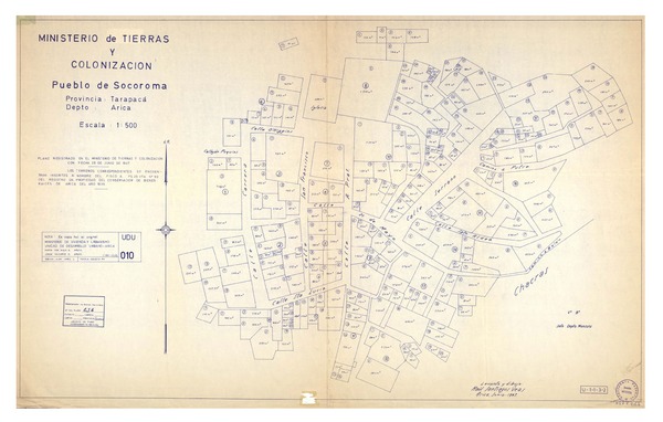[Plano] del Pueblo de Socoroma publicado por el Ministerio de Tierras y Colonización, 1947. |