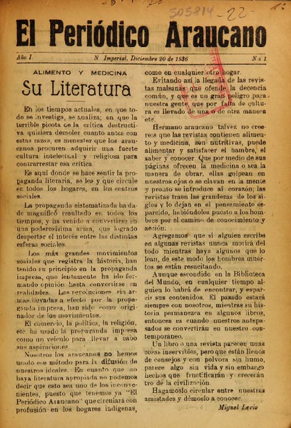 [Periódico] El Periódico Araucano, publicado en Nueva Imperial en 1936. |
