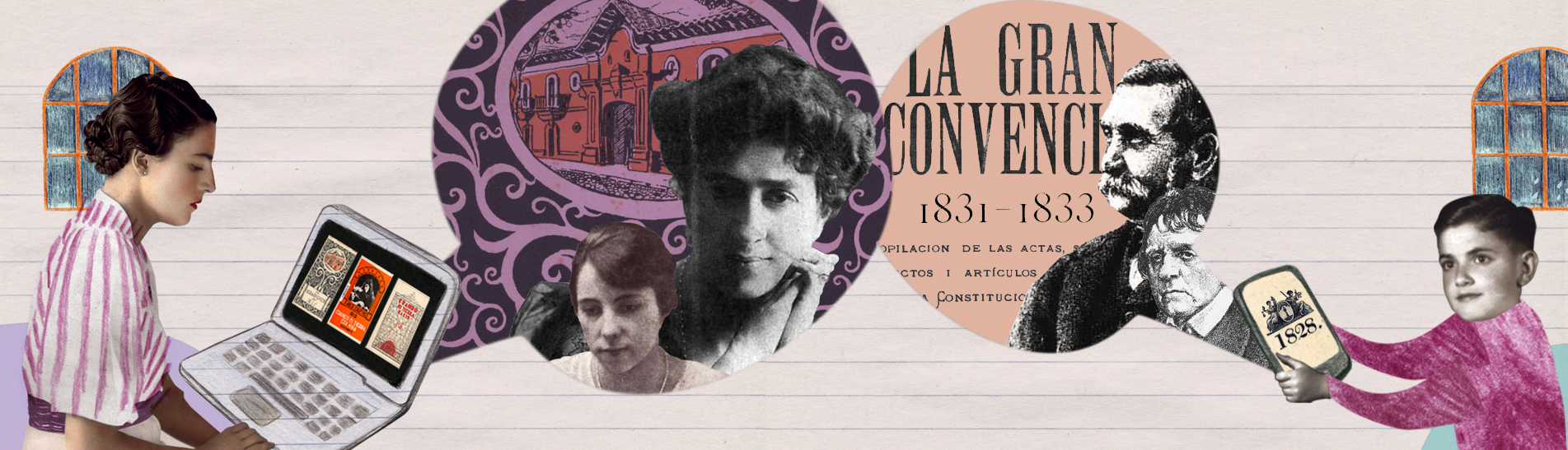 Nuestro encabezado de redes sociales reutiliza imágenes de documentos digitalizados que forman parte del Patrimonio Cultural Común de nuestra campaña Quédate en casa con la Biblioteca Nacional Digital y de los nuevos minisitios Inés Echeverría Bello (Iris) (1868-1949) y La Constitución de 1833.