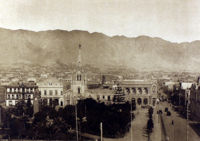 Plaza Colón de Antofagasta, hacia 1920 (Lámina) / Chile al día : álbum gráfico de vistas de Chile, 1920