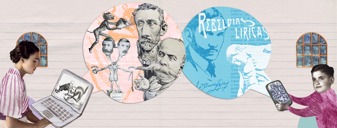 Nuestro encabezado de redes sociales reutiliza imágenes de documentos digitalizados que forman parte del Patrimonio Cultural Común de nuestra campaña #Quédateencasa con la Biblioteca Nacional Digital y de los nuevos minisitios José Domingo Gómez Rojas (1896-1920) y La sátira política en Chile (1811-1898).