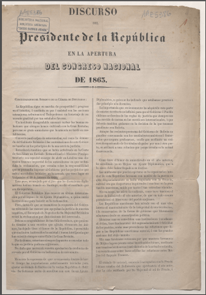 - Discurso del Presidente de la República en la apertura del Congreso Nacional : 1861-1871