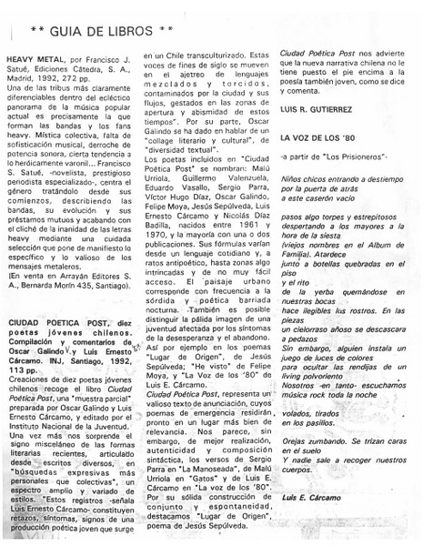 "No toda la poesía es rock, no todo el rock es poesía" [artículo] Mario Rojas
