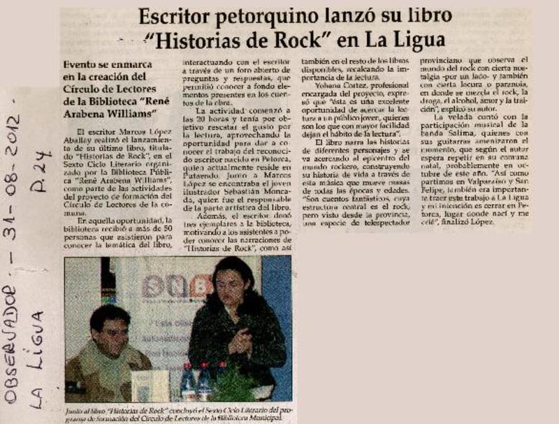 Escritor petorquino lanzó libro "Historias de Rock" en La Ligua. [artículo]