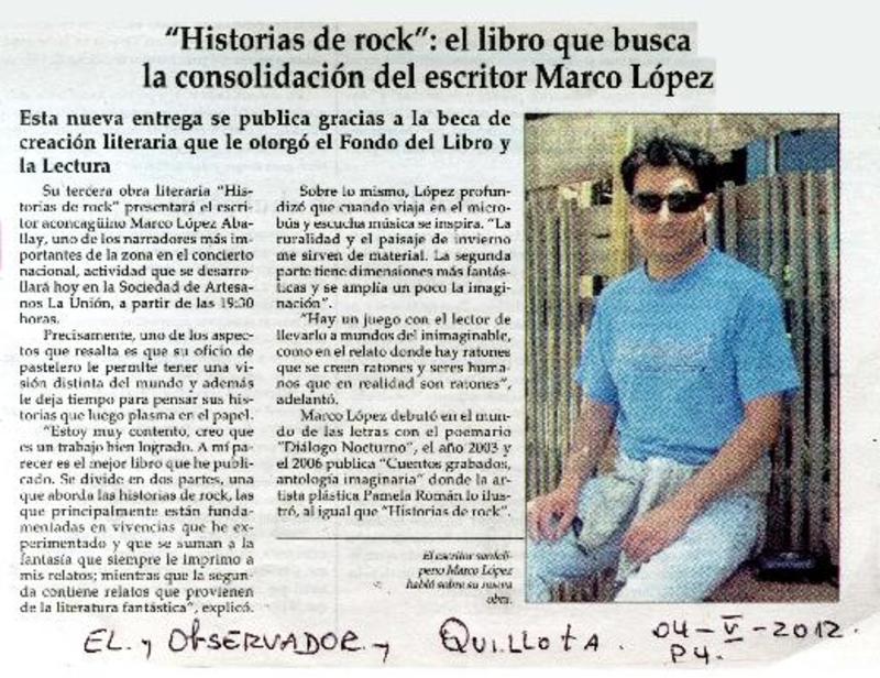 "Historias de rock": el libro que busca la consolidación del escritor Marco López. [artículo]