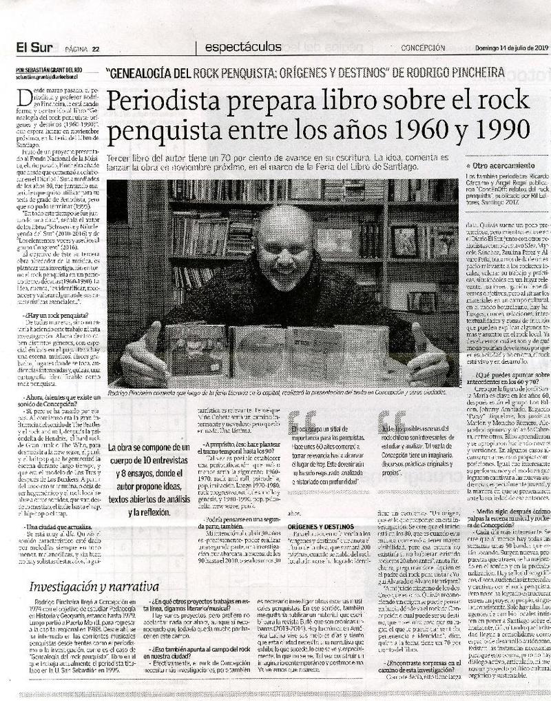 Periodista prepara libro sobre el rock penquista entre los años 1960 y 1990 [entrevista] [artículo] : Sebastián Grant del Río.