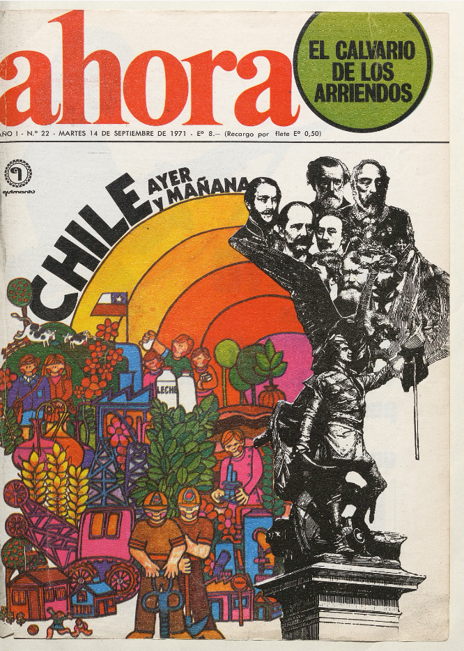 Alrededor de 35 imágenes fueron digitalizadas para este minisitio, usando una máquina digitalizadora Copibook Cobalt HD. El material se encontraba en 11 volúmenes empastados, que se conservaban en óptimas condiciones. Con estos documentos se complementan cápsulas con lahistoria de diferentes revistas y publicaciones de Quimantú. Ahora (1971) fue una revista semanal informativa del acontecer político nacional e internacional, que también cubrió temas culturales, de espectáculo y deportes. En sus páginas visibilizó medidas y mejoras en salud, educación, alimentación y vivienda.