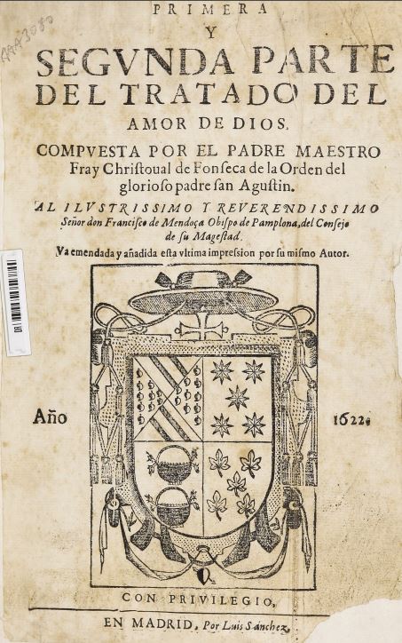 - Primera y segunda parte del tratado del amor de Dios / compuesta por el Padre Maestro Fray Christoval de Fonseca. Madrid : Luis Sanchez, 1622.