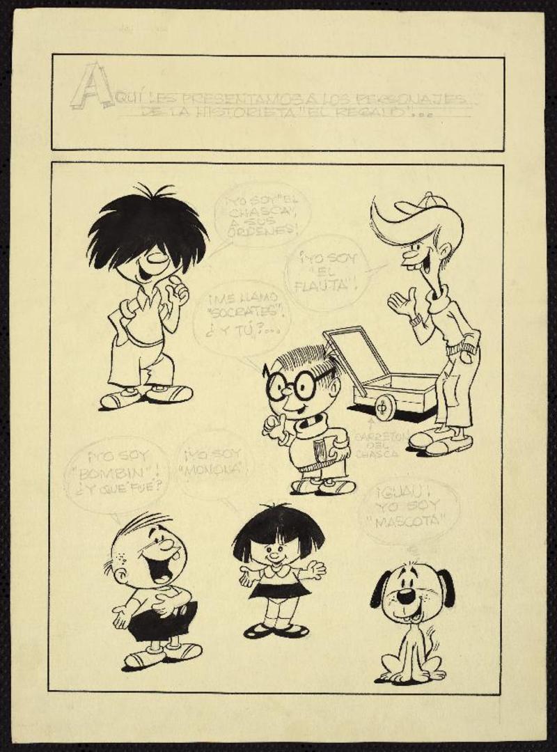 Dentro del conjunto, adquirido en 2019 por la Biblioteca Nacional, se pueden encontrar personajes infantiles como Pelusita, creada en 1950 en la revista Simbad y una las escasas viñetas protagonizadas por niñas de la época. También destacan Peneca, un inquieto y travieso niño que apareció en las páginas de la revista El Peneca, y Ponchito, un niño del campo chileno que debutó en la revista Simbad.