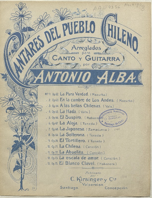 La Chilena canción [para] canto y guitarra [música] : arreglada por Antonio Alba.