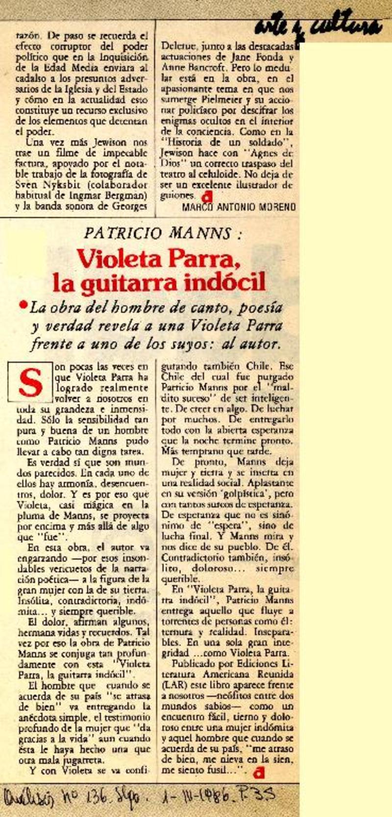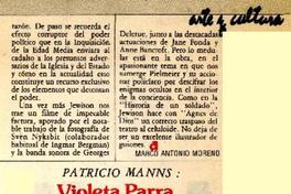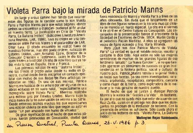 Violeta Parra bajo la mirada de Patricio Manns [artículo] Wellington Rojas Valdebenito.