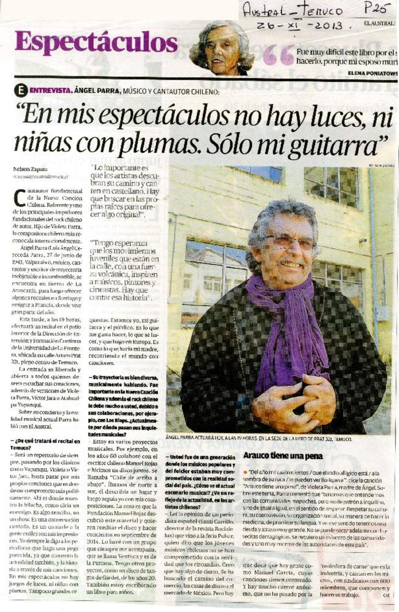 "En mis espectáculos no hay luces, ni niñas con plumas. Sólo mi guitarra" [artículo] Nelson Zapata