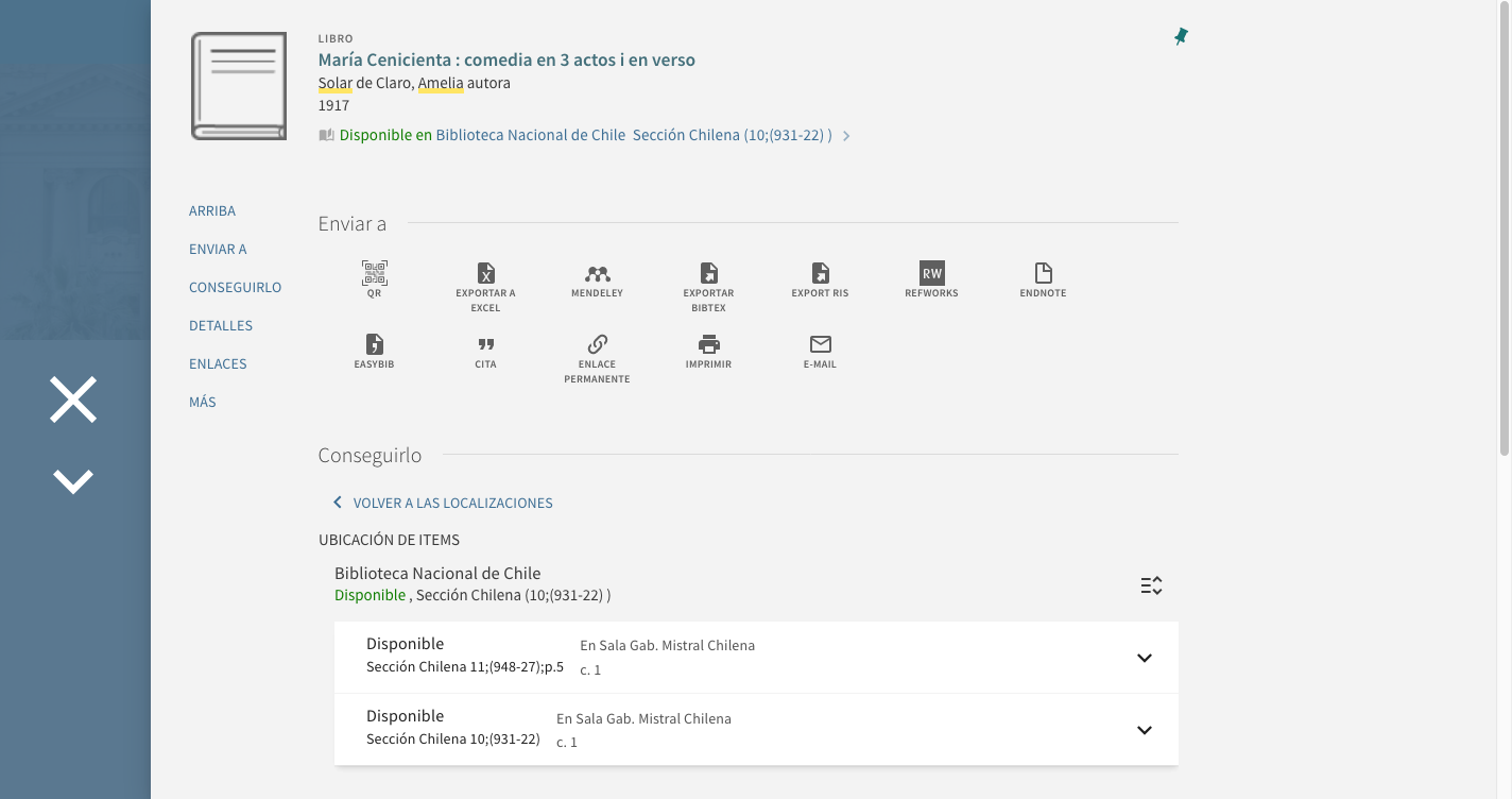Entre los aspectos más llamativos está la posibilidad de generar un código QR para acceder a la ficha de un documento o a una búsqueda específica. Este uso puede ser interesante para compartir información a otro dispositivo o persona, y también servir como una forma visual de referencia para campañas de difusión, así como procesos de fichaje para investigación o montajes de exhibición, etc.