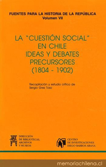 La cuestión social en Chile : ideas y debates precursores : (1804-1902) recopilación y estudio crítico de Sergio Grez Toso.