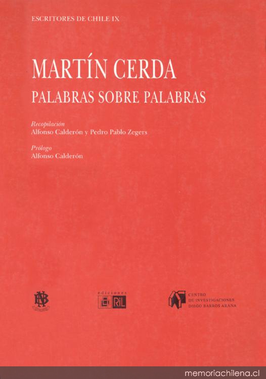 Palabras sobre palabras Martín Cerda ; recopilación,Alfonso Calderón y Pedro Pablo Zegers ; prólogo, Alfonso Calderón.